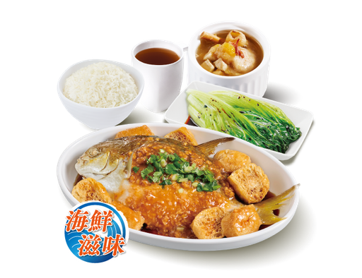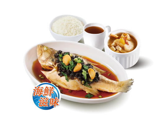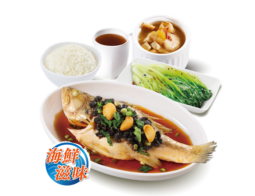 豉汁蒸鯧魚 + 白飯 + 是日燉湯 + 中國茶