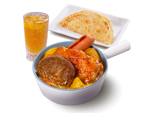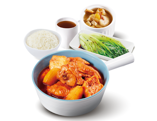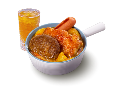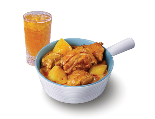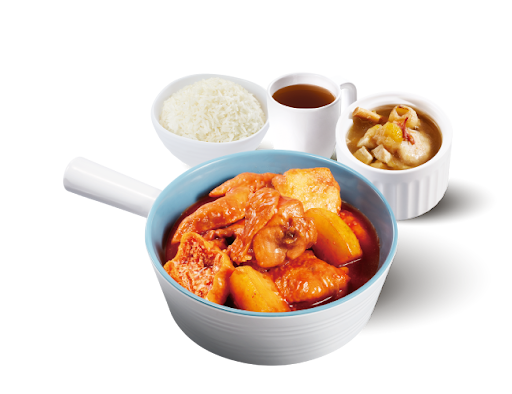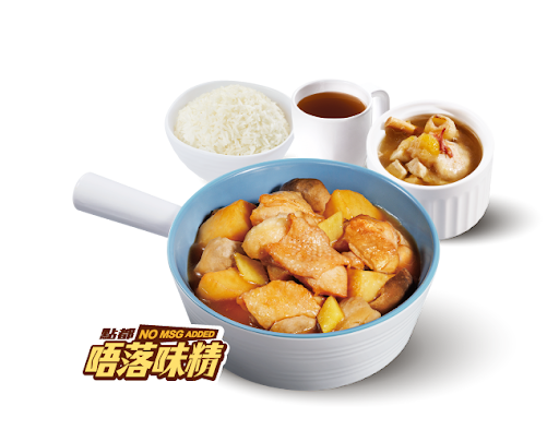 薯仔燜滑雞 + 白飯 + 熱飲
