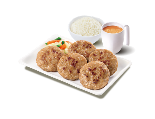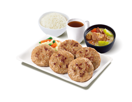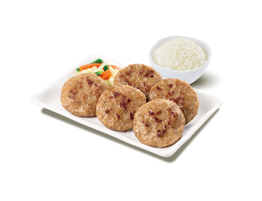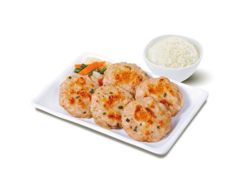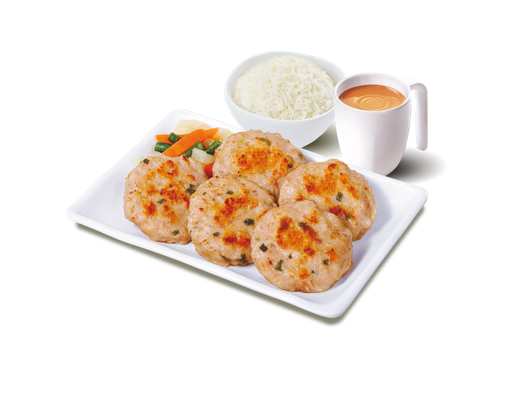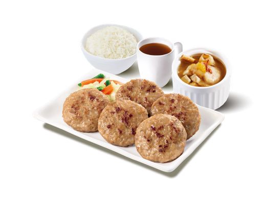 香煎蝦米冬菇肉餅 + 白飯 + 熱飲