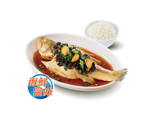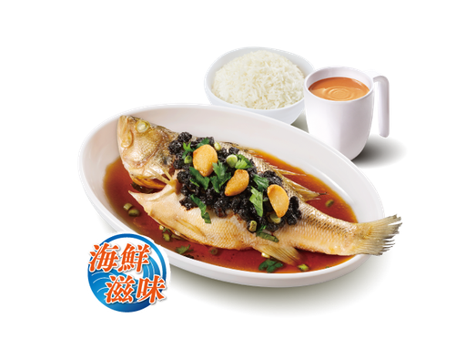 蒜子豆豉蒸鱸魚 + 白飯 + 熱飲