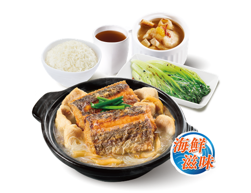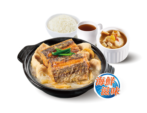脆脆魚片海蜆粉絲煲 + 白飯 + 灼菜 + 是日燉湯 + 中國茶