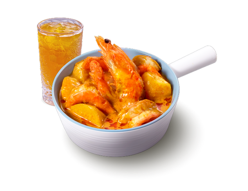 薑蔥大蝦煲仔糯米飯 + 熱飲