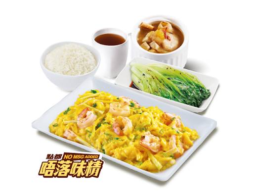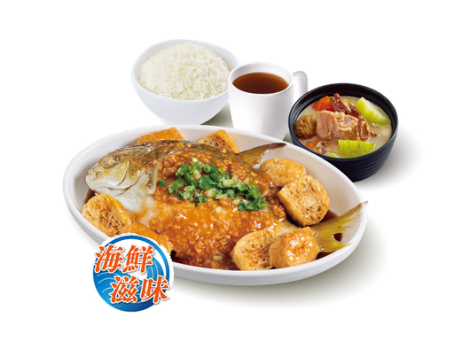 滑蛋粟米魚塊 + 白飯 + 時令湯水 + 中國茶