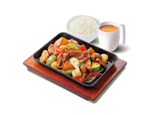 阿活煎蛋焗豬扒飯 + 是日啫喱杯 + 熱飲