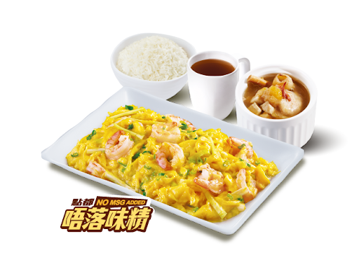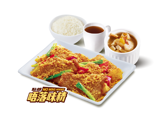 滑蛋粟米魚塊 + 白飯 + 熱飲