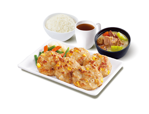 香煎粟米馬蹄肉餅 + 白飯 + 是日燉湯 + 中國茶