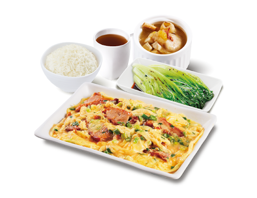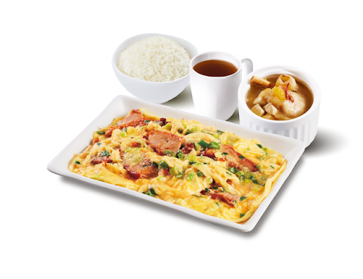 叉燒炒蛋 + 白飯 + 是日燉湯 + 中國茶