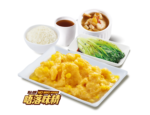 滑蛋粟米魚塊 + 白飯 + 是日燉湯 + 中國茶