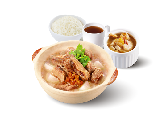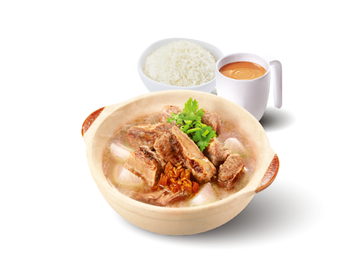 清湯蘿蔔牛肋肉煲 + 白飯 + 熱飲