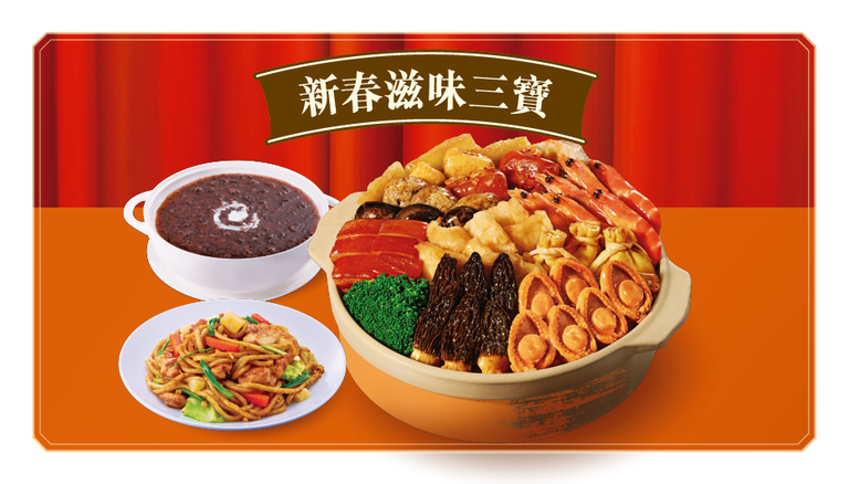 新春六人盆菜、臘味糯米飯(2.5磅)、紅燒海皇雞絲羹(3磅)