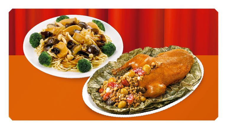 Braised E-fu Noodles with Mixed Mushroom (2.5lbs) + Lotus Leaf Wrapped Eight Treasure Duck (1 portion)