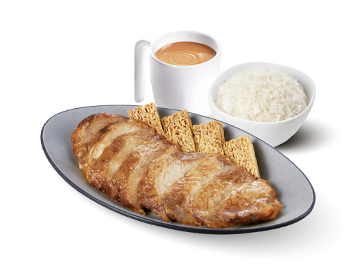 BBQ Pork Belly and Steamed Chicken with Rice + Hot Drink