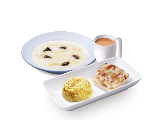 煎蘿蔔糕 + 靚粥 + 熱飲